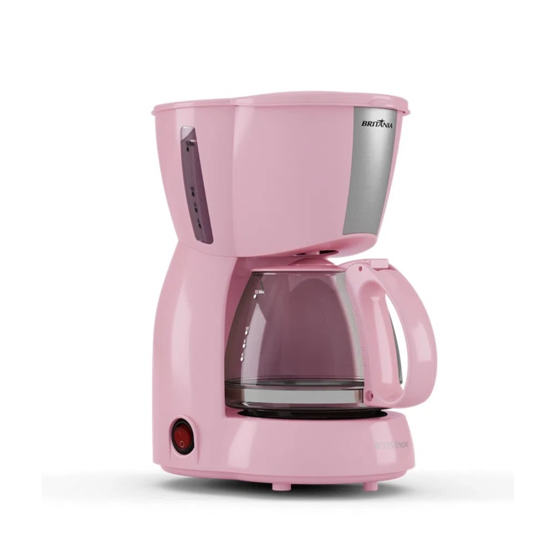 La Cafetera Britânia BCF15 rosa también cuenta con un diseño moderno con pequeños detalles de acero inoxidable, perfectos para darle un toque especial a tu cocina.
