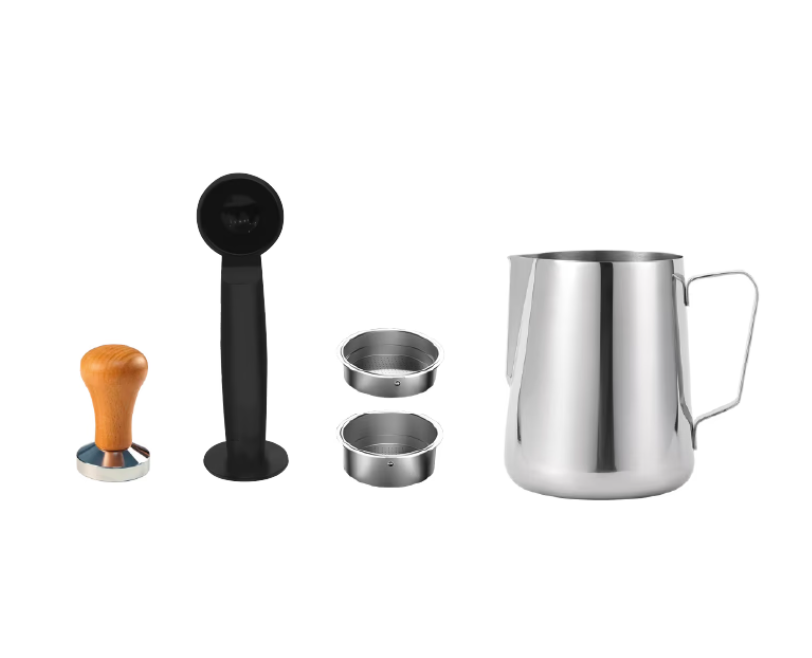 • Accesorios incluidos: Filtro para 1 y 2 tazas, Portafiltro, Cuchara medidora de café, Jarra de leche y prensador de café.
