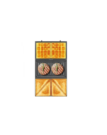 · 3 en 1: Incluye 3 placas intercambiables para sándwiches, waffles o grill.