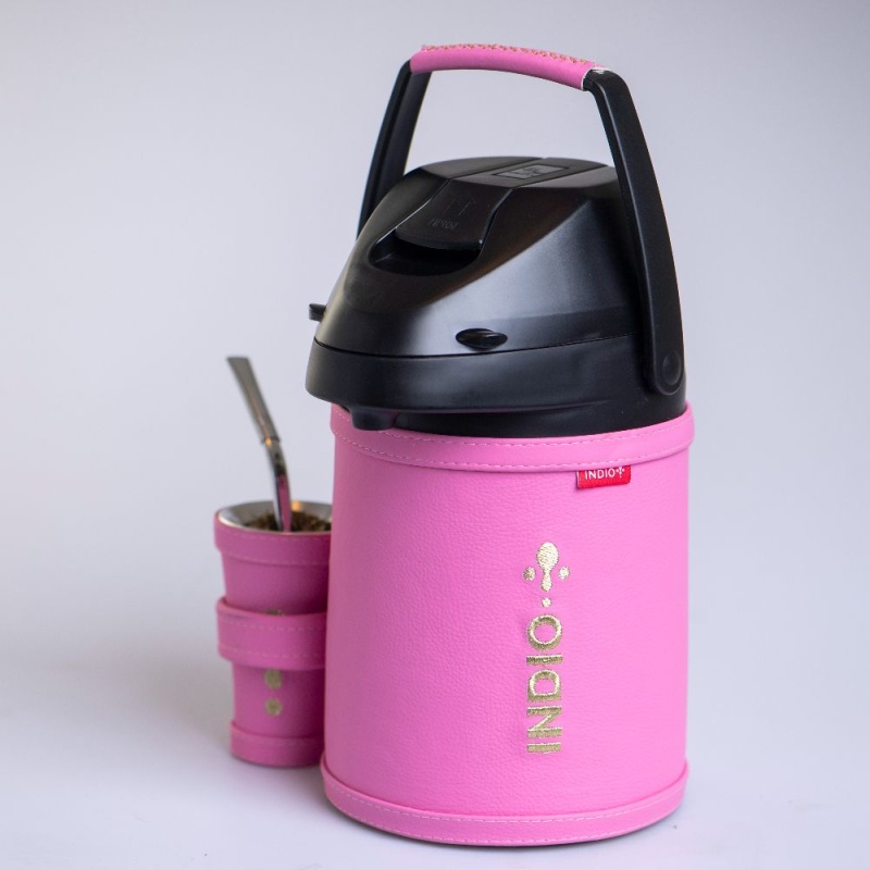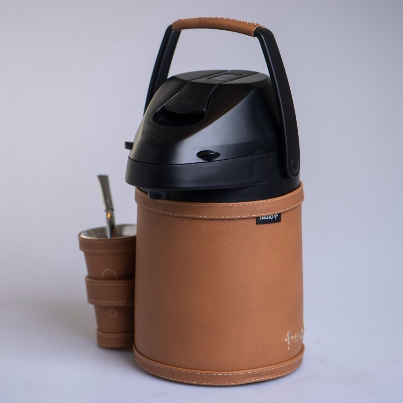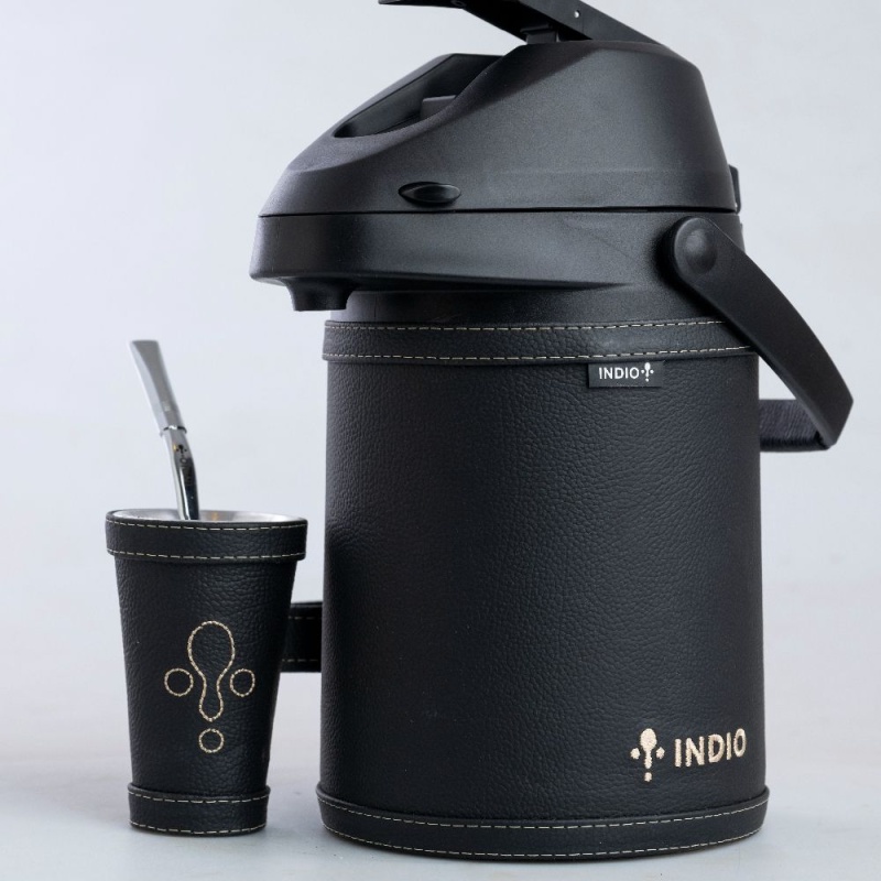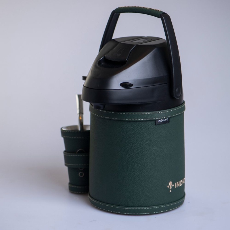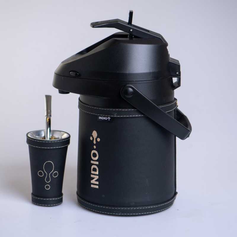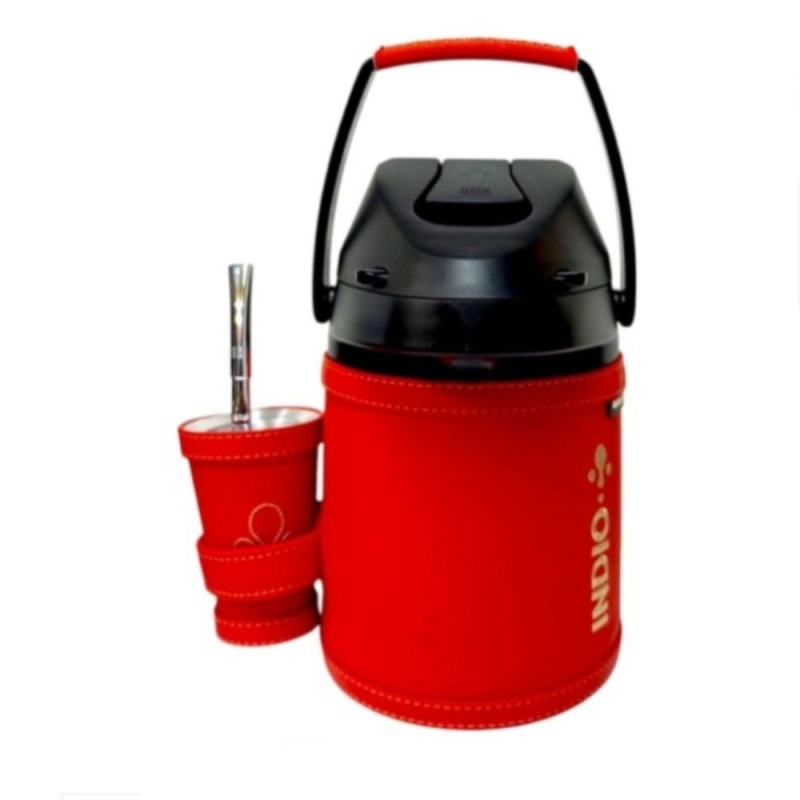 Este equipo de tereré es de acero inoxidable de doble pared, mantiene a la perfección la temperatura del agua hasta 12 horas y no se humedece por fuera.