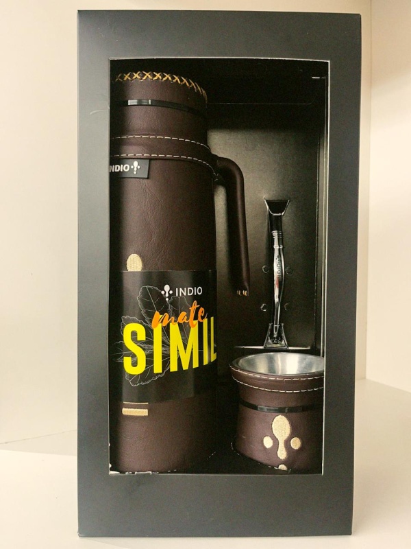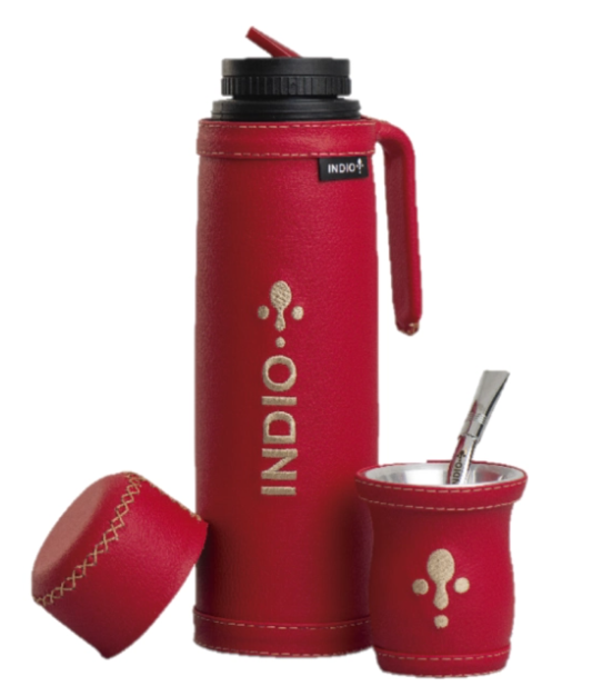 TERMO DE ACERO INOXIDABLE INDIO DE 1 LITRO + GUAMPA DE MATE TRADICIONAL + BOMBILLA PICO ANCHO DE ALPACA